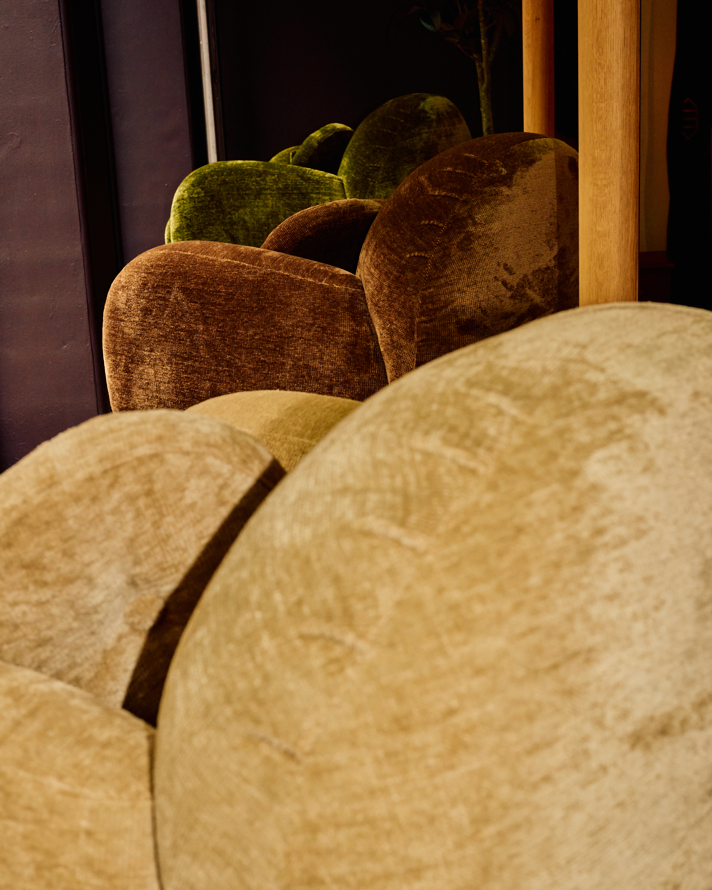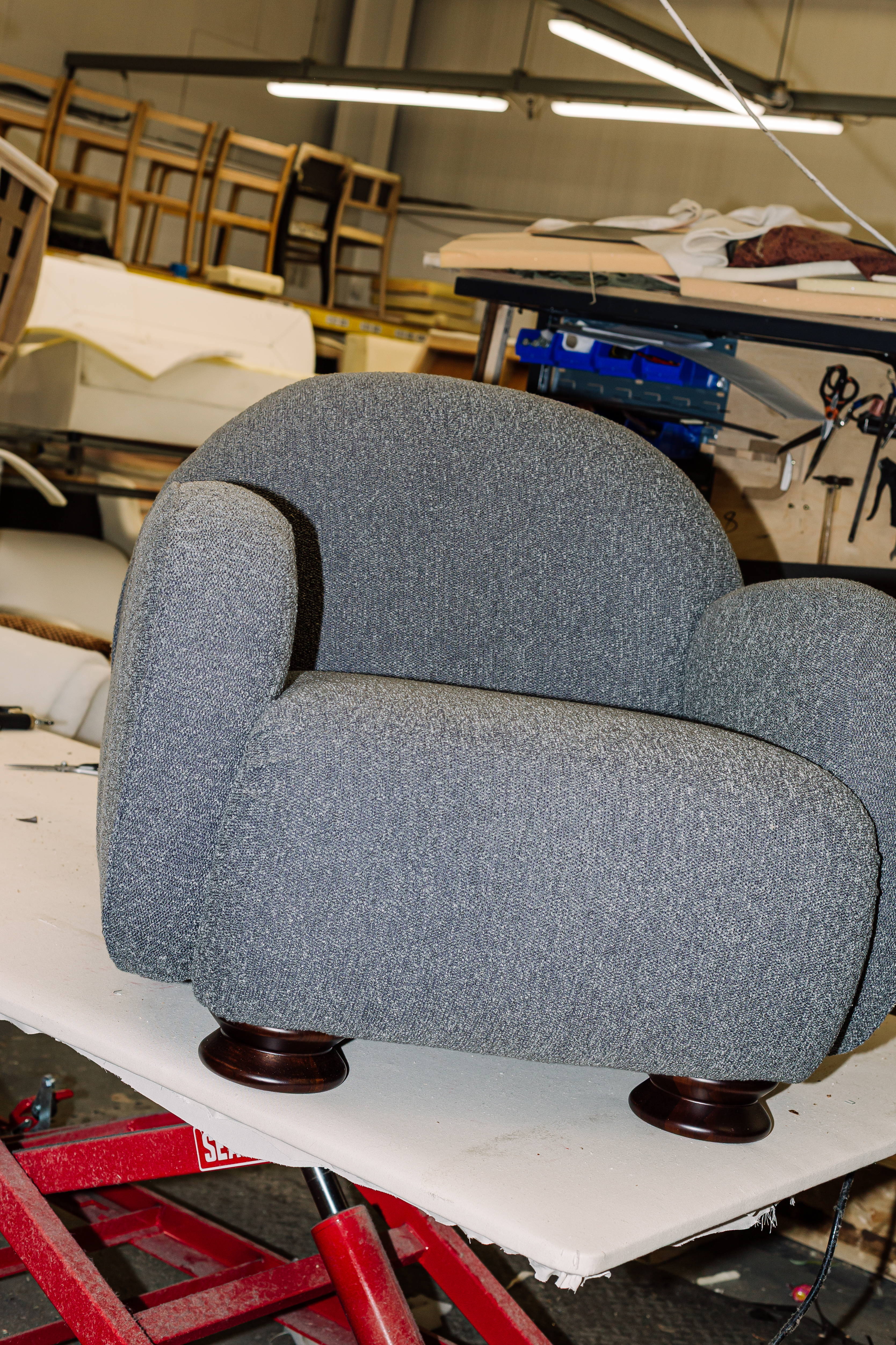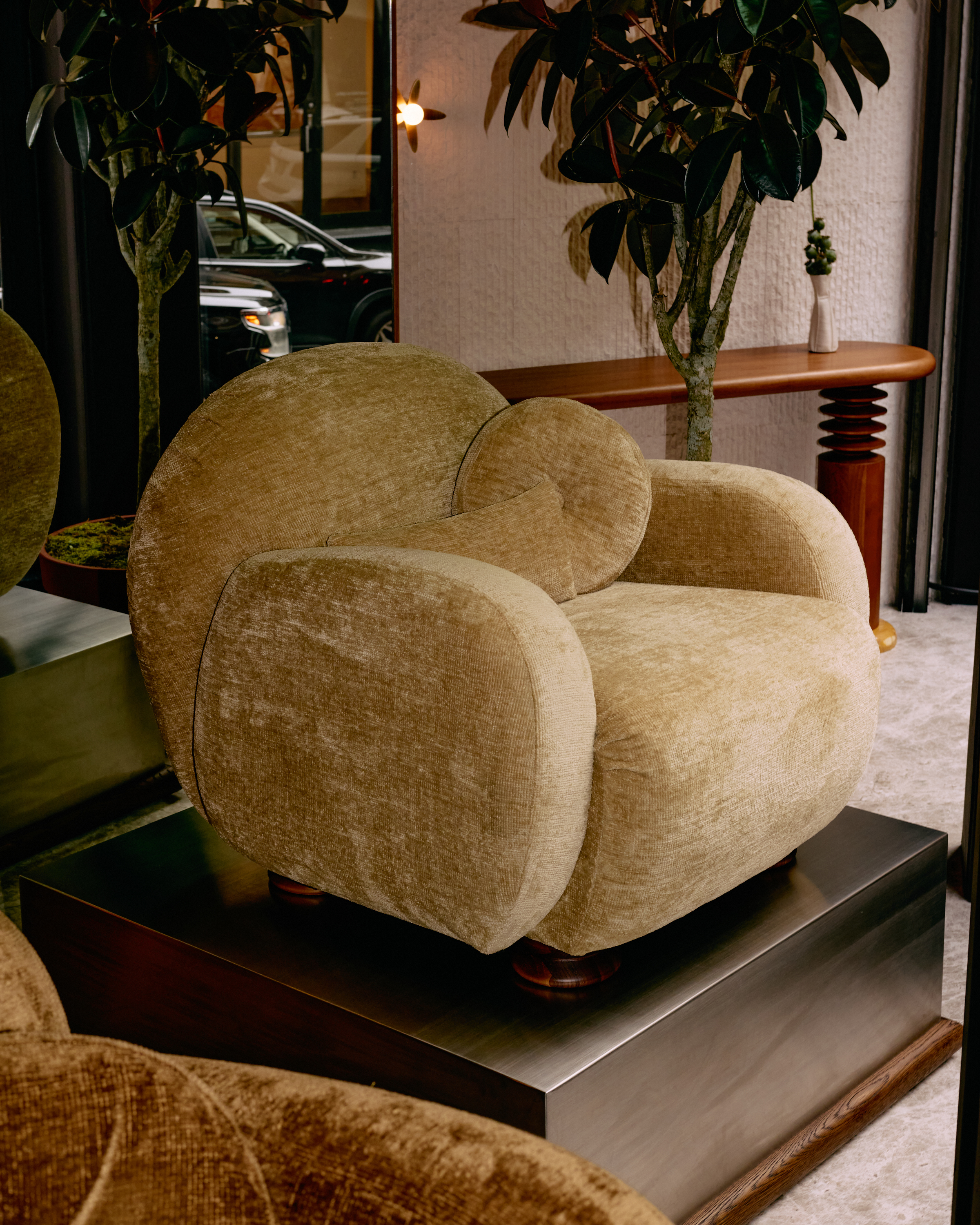 The Cub looks to the club chairs of the Art Deco period. The curved back, tank arms, and deep seat provide a dignified comfort through a classic silhouette. Complete with lathe-turned walnut legs, a nod to the spring-like motif throughout Orior’s woodworking.